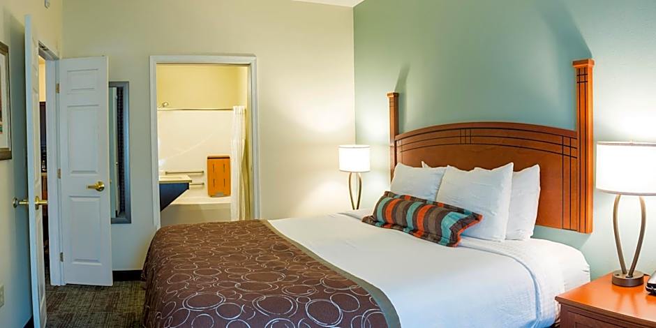 Featuring a 37-inch flat-screen TV, microwave, and fridge, this studio also includes audiovisual alarms and an accessible bathroom with a roll-in shower.